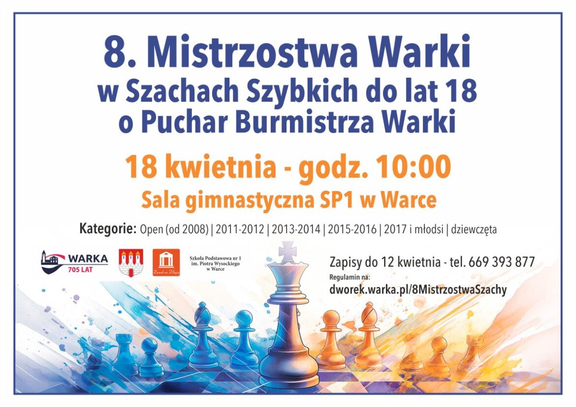 Regulamin i szczegóły: https://dworek.warka.pl/8mistrzostwaszachy/