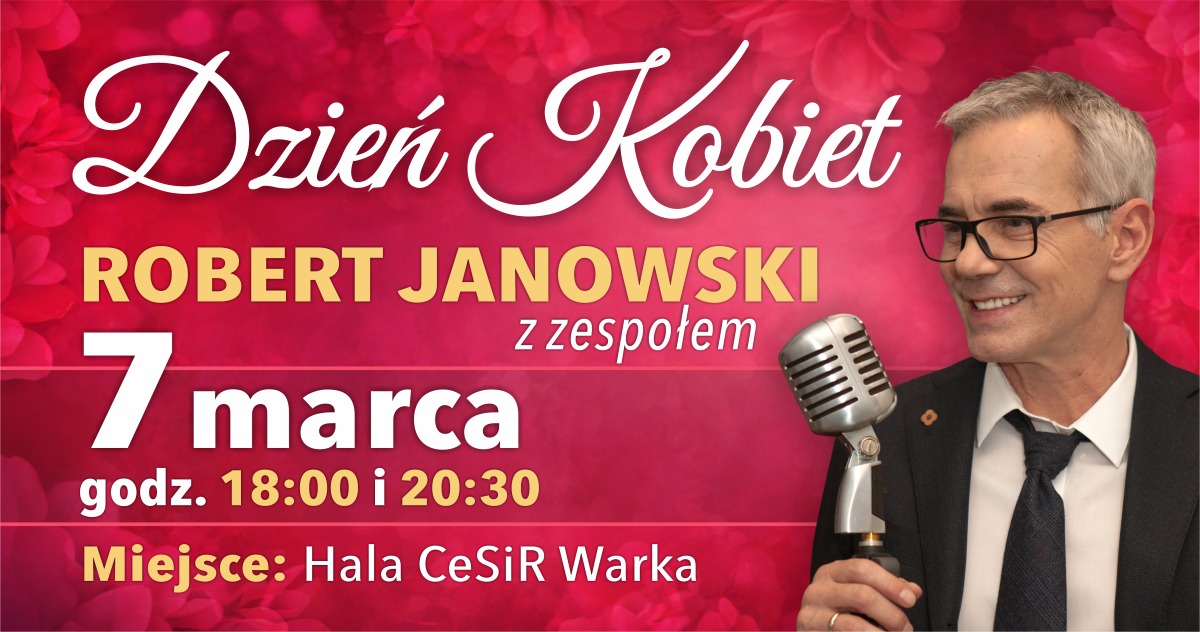 Z okazji Dnia Kobiet w Warce odbędzie się wyjątkowy koncert Roberta Janowskiego z zespołem. Wydarzenie zaplanowane jest na 7 marca 2026 r. (sobota) w hali sportowej CeSiR. Aby jak najwięcej Pań mogło uczestniczyć w tym wydarzeniu zorganizowane będą 2 koncerty – o godz. 18:00 oraz 20:30.
