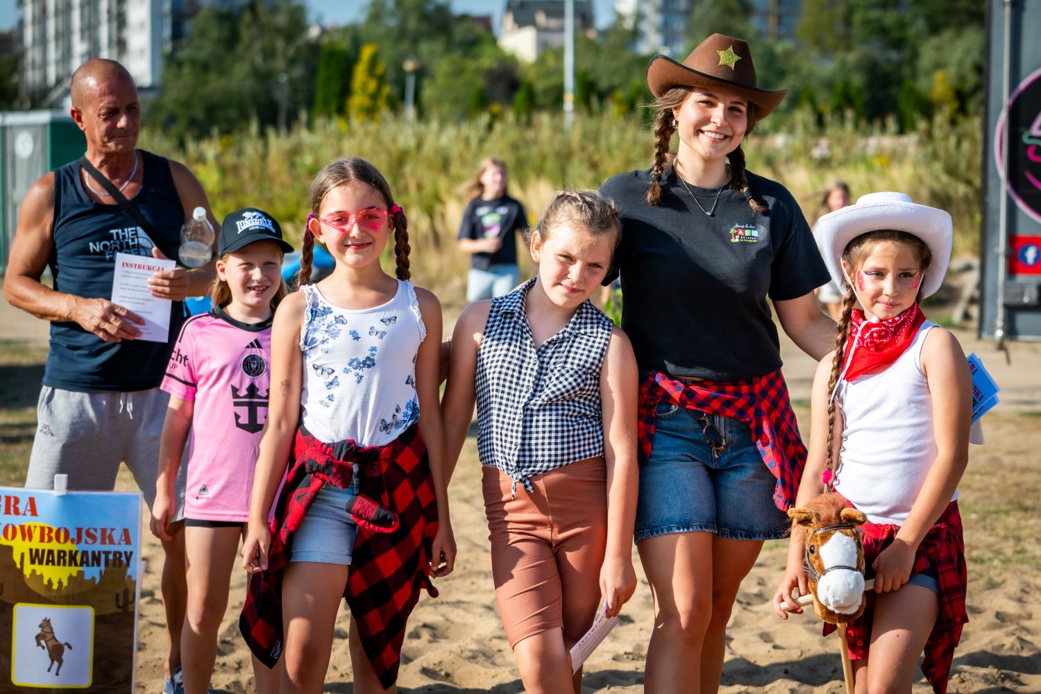 Każdy mały kowboj i kowbojka otrzymywał kartę do zbierania naklejek, a po ukończeniu wszystkich konkurencji – zasłużoną nagrodę. Dodatkowo na dzieci czekały kolorowe tatuaże, kowbojskie przebrania do zdjęć, animacje prowadzone przez Karinę Grzelewską oraz pokaz taneczny jej grupy hula hop.