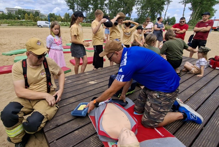 Centrum Sportu i Rekreacji w Warce, wspólnie z wieloma innymi podmiotami – między innymi Policją i Strażą Pożarną – zorganizowało na terenie plaży miejskiej w Warce ciekawe zajęcia, dzięki którym wszyscy uczestnicy mogli poznać zasady udzielania pierwszej pomocy i zobaczyć, jak prawidłowo wykorzystać AED. Ponadto otrzymali dużą dawkę wiedzy, która na pewno pozytywnie wpłynie na bezpieczeństwo podczas letniego wypoczynku.