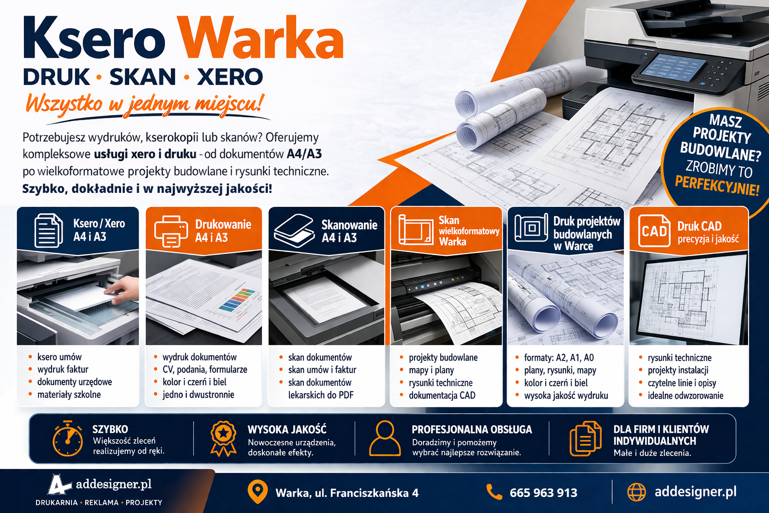 Ksero, druk i skanowanie w Warce – szybko i wygodnie w Addesigner.pl